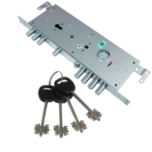 Основной замок: двухсистемный Гардиан 25.14 с вертикальным приводом, 4 наивысший класс взломостойкости, диаметр ригелей 16 мм